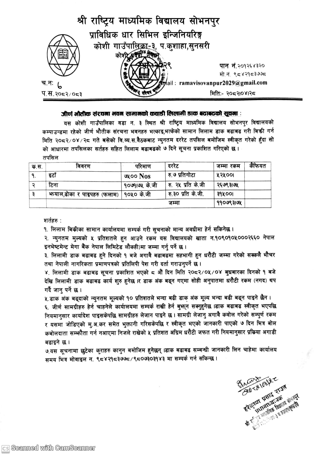 भवनको समान कबाडी लिलामी